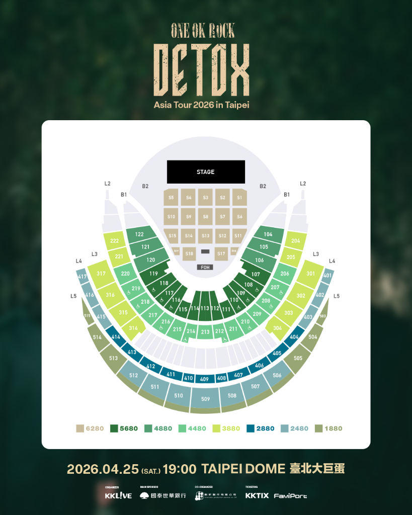 《ONE OK ROCK DETOX Asia Tour 2026 in Taipei》 4/25 臺北大巨蛋