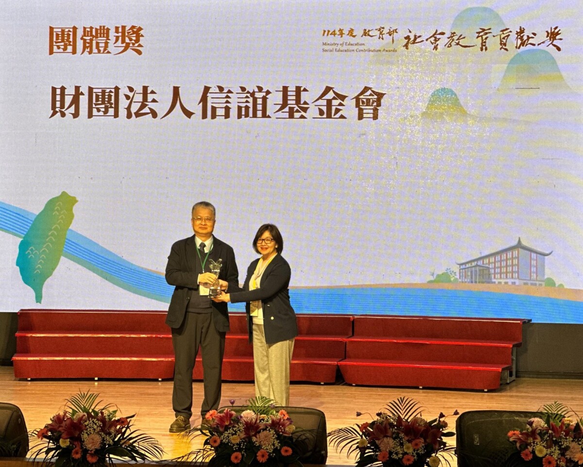 【記者 周澄予/台北 報導】深耕台灣幼兒教育逾半世紀的信誼基金會,長期致力推動兒童早期教育與親職教育,今(16)日榮獲教育部114年度「社會教育貢獻獎」團體獎肯定,由信誼基金會營運長廖瑞文代表受獎。自1971年成立以來,信誼以「兒童發展為核心」為理念,在現任董事長張杏如的帶領下,從倡議親子共讀、親子共玩出發,陸續創設幼兒專業出版、親子館、玩具圖書館及實驗幼兒園等多項創新服務,為台灣建構本土化幼兒教育模式,更推動嬰幼兒閱讀運動與國際交流,持續為每一個孩子打造更友善的成長環境。2024年起更全面採用FSC認證紙張印製書籍,以實際行動落實永續教育理念,展現守護下一代與地球的長期承諾。