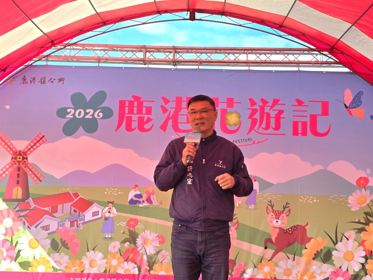 鹿港鎮長許志宏表示,每年農曆年前,公所舉辦的花海節活動,都會吸引無數遊客前來欣賞拍照、打卡留念。「2026鹿港花遊記」活動現場除了繽紛花海,也規劃一系列打卡景點,有「追風小徑」、「花遊任意門」、三公尺高的充氣「鹿寶」,讓大家可以恣意放鬆,徜徉在花朵的懷抱中,盡情地拍下美美的照片,為家人朋友留下幸福美好的瞬間。