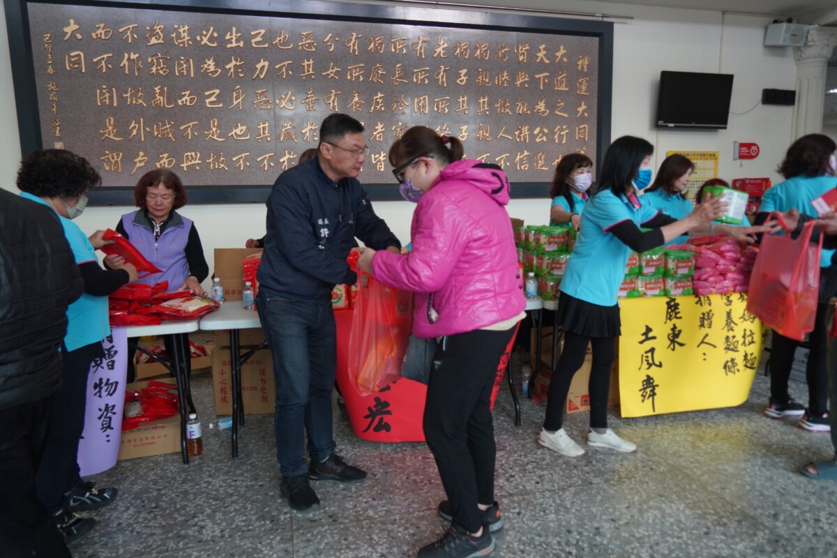 同時今日在鹿港鎮公所由鹿港婦聯會發起「愛心聯合秋冬送暖公益活動」,募集了全聯禮券、白米、饅頭、麥片、麵條、米粉、衛生紙、洗潔精等民生物資,捐助給鎮上200戶弱勢邊緣戶,婦聯會表示期盼在即將到來的新年,能夠給予最實質的幫助。(照片/記者廖美雅拍攝)