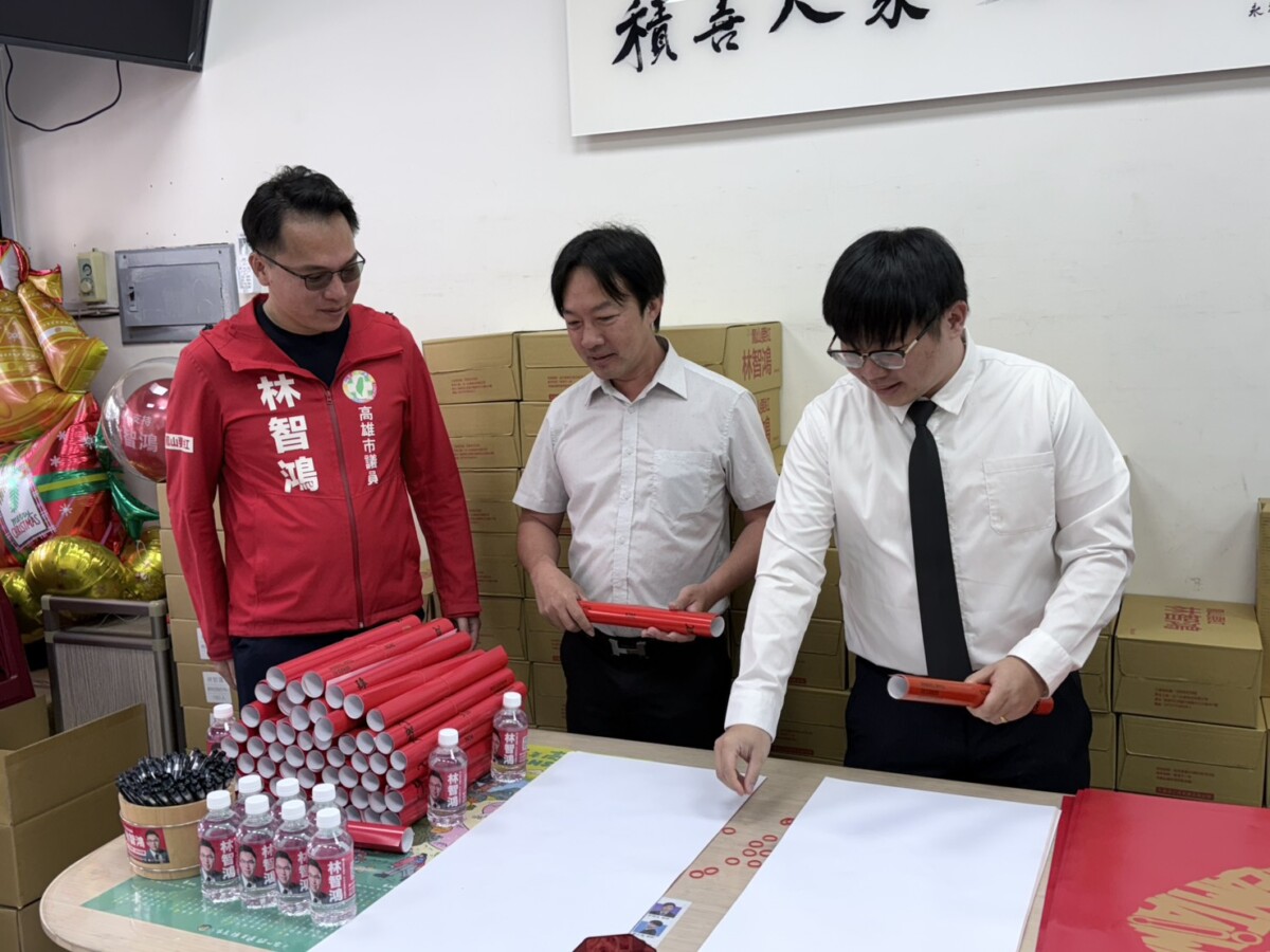 【記者 王苡蘋╱高雄 報導】高雄市議員林智鴻今(18)與全國200處據點,同步響應中華職棒會長、立委蔡其昌發起「台灣尚勇」春聯發送行動,吸引許多民眾一早便在他服務處前大排長龍,20分鐘內便將春聯全數掃光。現場除林智鴻親自發送外,更有長相激似蔡其昌以及總統賴清德的志工協助發放,令現場民眾一度以為是「本尊」親臨現場,差點要喊「總統好、會長好!」,直呼「怎麼那麼像」!