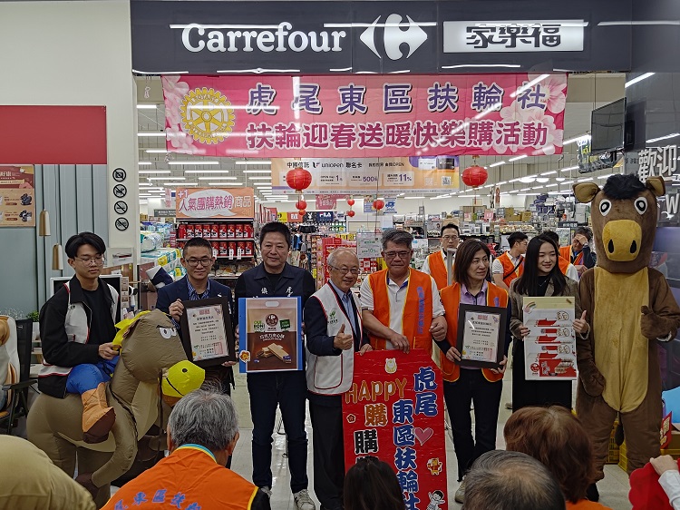虎尾東區扶輪社社長王慶樟表示:扶輪社長期關注社會公益,深知春節是闔家團圓的時刻,希望馬上夠馬上幸福採購年貨迎馬年到來。此次透過與雲林家扶中心、家樂福虎尾店的跨界合作,不僅提供實質的購物金,更希望透過「陪伴採買」的行動,讓家庭感受到被關心、被支持,也希望透過「虎尾東區扶輪日」的舉辦,讓更多需要幫助的角落都能看見亮光。