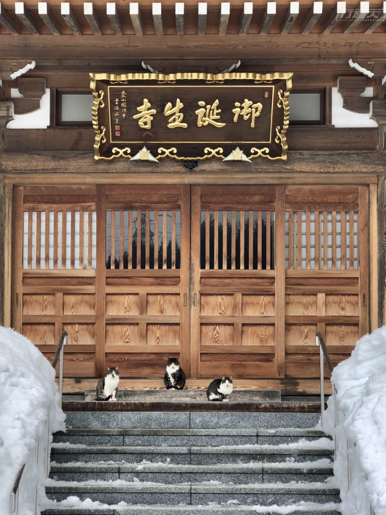 御誕生寺彷彿擁有一種靜謐的魔力,能輕輕拂去塵世的喧囂,讓人沉醉在與貓共處的純粹裡。無論是依偎取暖的毛茸茸身影、長毛貓優雅的步態,還是那一記無傷大雅的貓拳,都化作了旅人心中最柔軟的印記。或許這正是「慈悲」具象化的模樣,它不需高築神壇說教,而是一個擁抱、一聲呼嚕,一次互動。在這座雪國寺院中,人與貓共同修習著一門簡單而深刻的功課:如何在寒冷的世界裡善待每一個相遇的靈魂,並為彼此留下一抹恆久的溫暖。