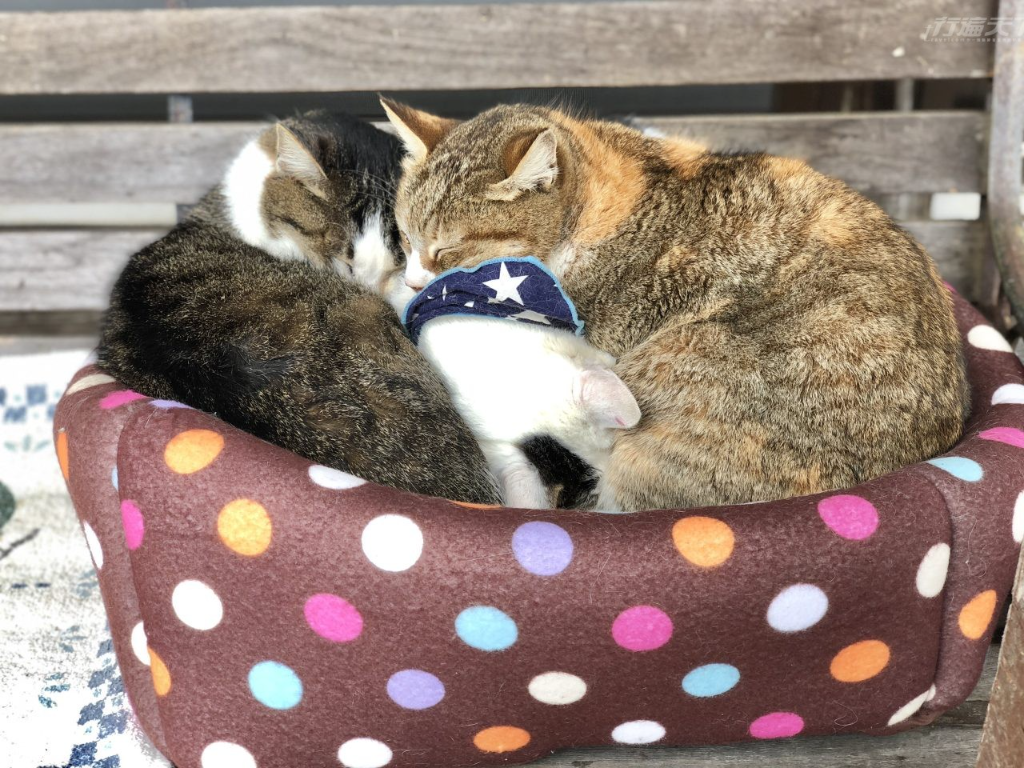 ▲ 為了抵禦福井寒冷的冬天,貓咪們本能地擠在睡窩裡取暖,形成分不清誰是誰的「貓糰子」。