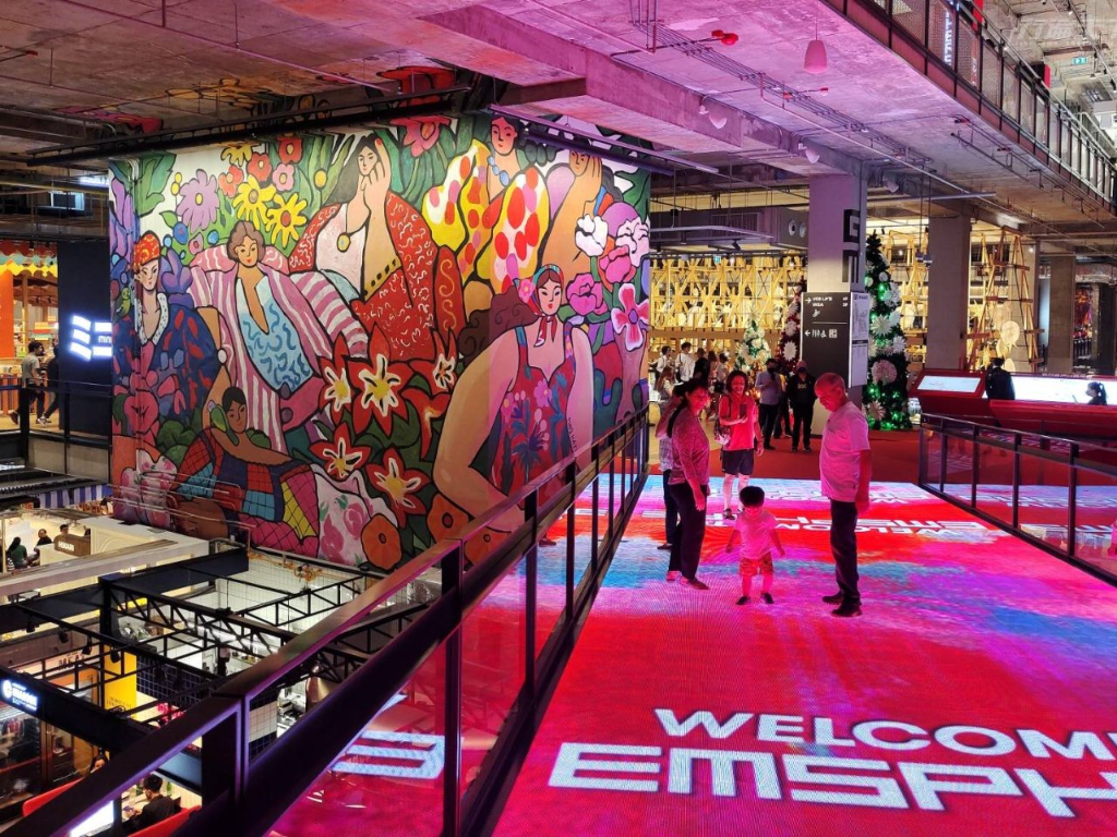 ▲ Emsphere的LED大道和藝術壁畫,時尚渲染力十足。