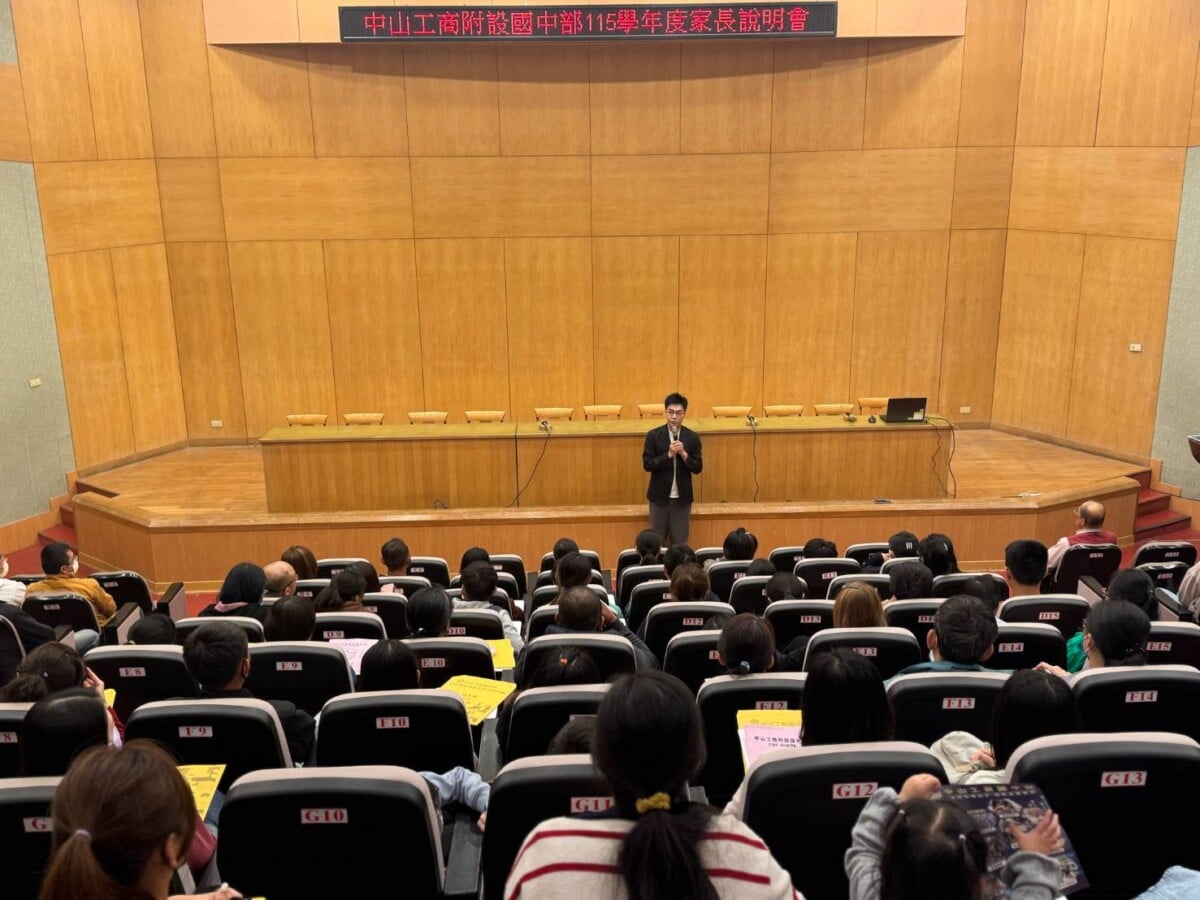 【記者 王苡蘋╱高雄 報導】中山工商國中部以「愛、溫度與小班制」為主軸,舉辦國中部家長說明會,向家長完整說明辦學理念與課程特色。李昱平校長表示,說明會吸引約二百七十多位家長、學子參與,其中有十六組為校內教職員工子女、中山附屬幼兒園畢業校友,或家中已有兄姐就讀國中部的「中山家庭」,充分展現「中山人推薦中山人」的高度信任與口碑。