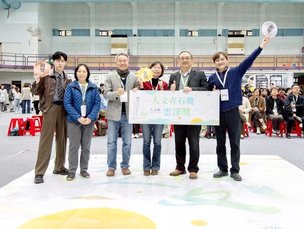 【記者 吳瑞興/嘉義市 報導】教育部「數位人文跨域人才智慧領航計畫」1月12日在中央大學舉辦分享會,同時頒發「2025教育部數位人文青石獎」。嘉義大學李佩倫副教務長主持之「數位跨域嘉義巡禮 再現諸羅人文風華」計畫,展現教研實踐卓越成果,勇奪教研獎「人文類–雲澤獎」金獎、「人文類–文心獎」金獎、「科技類–雷霆獎」銀獎及學研獎「教育類–凌霄獎」銀獎,另有3位同學獲選「優秀青年學者」,展現嘉大跨域教學實力。