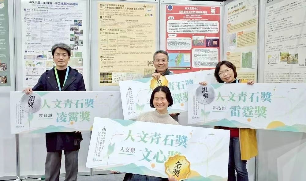 嘉大以人文數位轉譯與科技回溯歷史軌跡展現跨領域共授典範,獲獎作品跨越文學、博物館學及地理資訊系統(GIS)等多元領域,展現「數位人文」的核心價值。中文系蔡忠道教授、吳盈靜副教授、數位系李佩倫教授、王秀鳳教授以「數位人文跨領域教學實踐-以『大學國文(II)嘉義現代文學選讀』課程為例」榮獲雲澤獎金獎,該課程由教師跨域共授,利用GIS與多媒體技術進行「數位轉譯」,引導學生從經典文學中重新認識腳下的土地。學生從被動閱讀轉為主動創作,產出高品質的GIS地圖與文學動畫,成功深化對在地文學的詮釋。