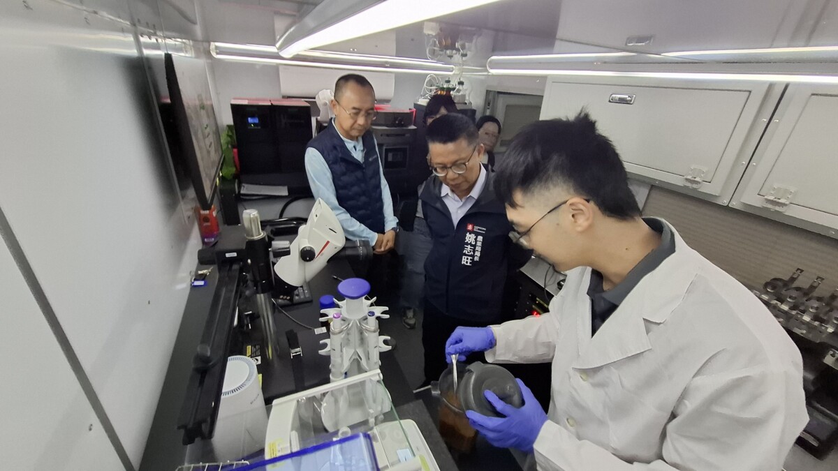 ▲高雄市政府農業局長姚志旺出席「質譜宅急便」巡迴服務啟動活動,現場了解行動質譜車農藥殘留快篩流程,並與檢驗人員交流,強調從產地端落實把關,守護市民飲食安全。