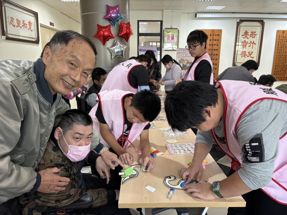 活動中師生安排多元且富創意的活動,包括手作課程、趣味互動遊戲與舞蹈表演,陪伴院生在歡笑中互動拉近彼此距離,讓關懷不只是形式,而是發自內心的交流。
