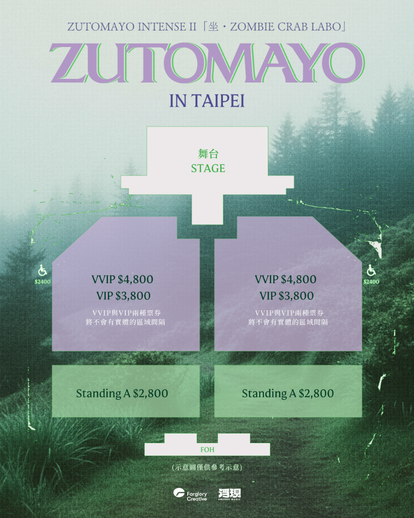 ZUTOMAYO 於2024年曾首度來台擔綱浮現祭(Emerge Fest 2024)壓軸演出,並且於台北進行史上首次海外專場,首次來台就造成極高討論度,門票更於開賣便旋即售罄,一票難求,證明其廣泛的影響力。今年五月在台北的舞台,將再次完整呈現 ZUTOMAYO 從音樂作品到強烈而精準的震撼演出現場。本次售票即將在1/22起開放會員抽選登記,並於2/1開放一般售票。