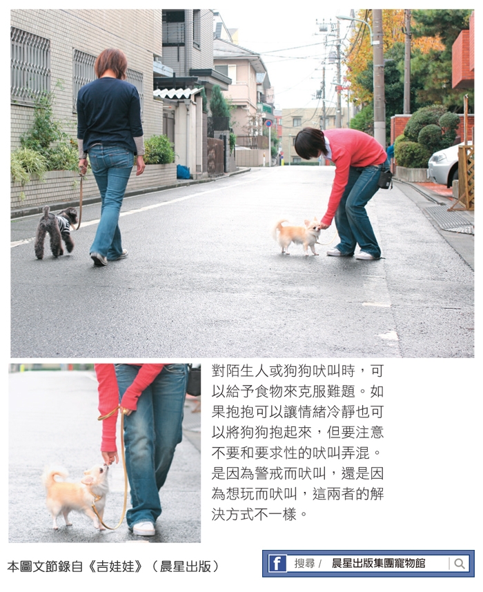 家中吉娃娃愛吠叫的問題,大部分都是因為社會化不足。若在幼犬時期確實的社會化,就能加以預防。可是太過急著社會化有可能會出現反效果,所以必須要多多注意。例如,突然帶狗狗到人多的地方或是寵物公園讓他自由活動都有可能使狗狗產生恐懼感,甚至變得神經質。