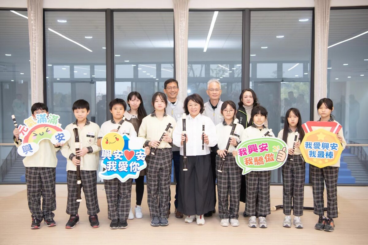 黃敏惠市長提到,興安國小辦學績效良好,在師生共同努力下,累積拿到兩次教育部閱讀磐石獎及兩座建築園冶獎,成績亮眼。興安鼓舞擊樂團已創團25年,是嘉義地區最具代表性的鼓樂團隊,114年榮獲全國音樂比賽特優的擊興打擊樂團,亦備受家長肯定與推崇。市府看見近年來全校師生亟需室內的集會場所進行音樂及運動活動,因此特別編列預算全力支持學校興建活動中心,讓學校的硬體設備持續提升,帶動校務蓬勃發展。