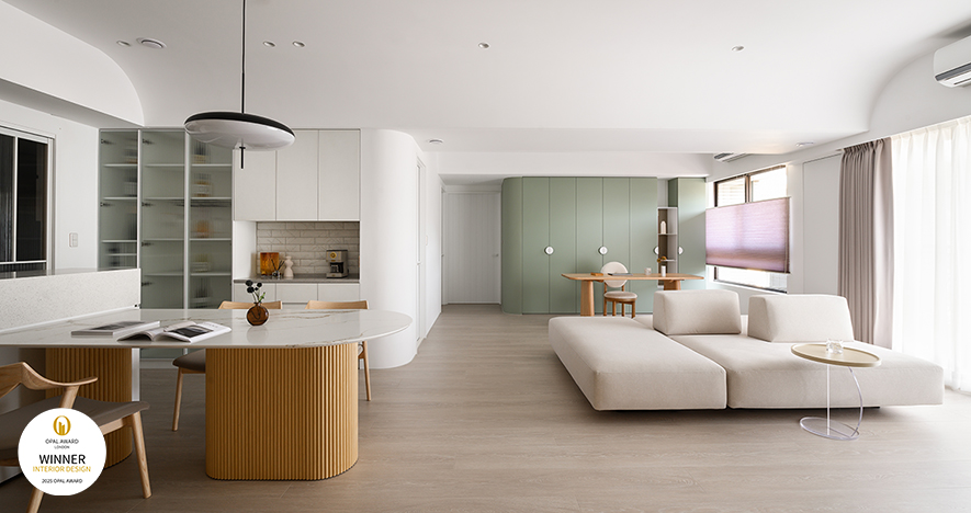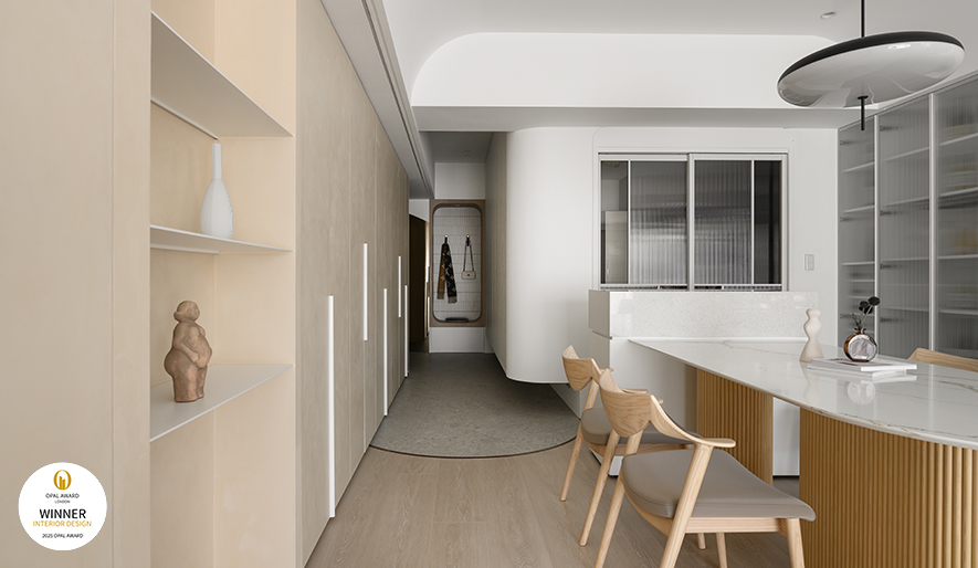 於本屆2025年度賽事中,藉精心挑選的帝雉石作為案場餐桌檯面,其人造的優美質地不僅避免開採自然石材,亦兼顧天然大理石的質感,更因耐用易養護的特性降低更換頻率,加之玄關地坪將大板磚鋪貼於舊有磚面上、減少施工廢材量的規劃,全力響應環保的優良作品《雲暮》,契合大賽對建築永續性的重視,斬獲「Winner」大獎認可!
