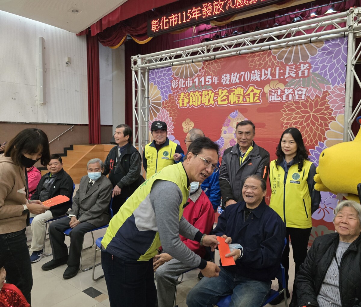 彰化市公所說明將於1月29日在各里辦公處或各里指定地點,發放115年春節敬老慰問禮金,凡年滿七十歲【民國45年以前(含當年)】,在彰化市設籍六年以上的長者【民國108年12月31日以前設籍】且戶籍未再遷出者,每人都可獲得敬老慰問禮金新臺幣6,000元及長壽麵線一份。有關禮金領取的方式,為順應時代潮流及尊重長者的意願,市長林世賢指示,自民國110年起,讓長者自願選擇採領現金或者用轉帳的方式;以今年為例,有24,694人選擇用轉帳、占77.38%,領現金的為7,217、占22.62%。