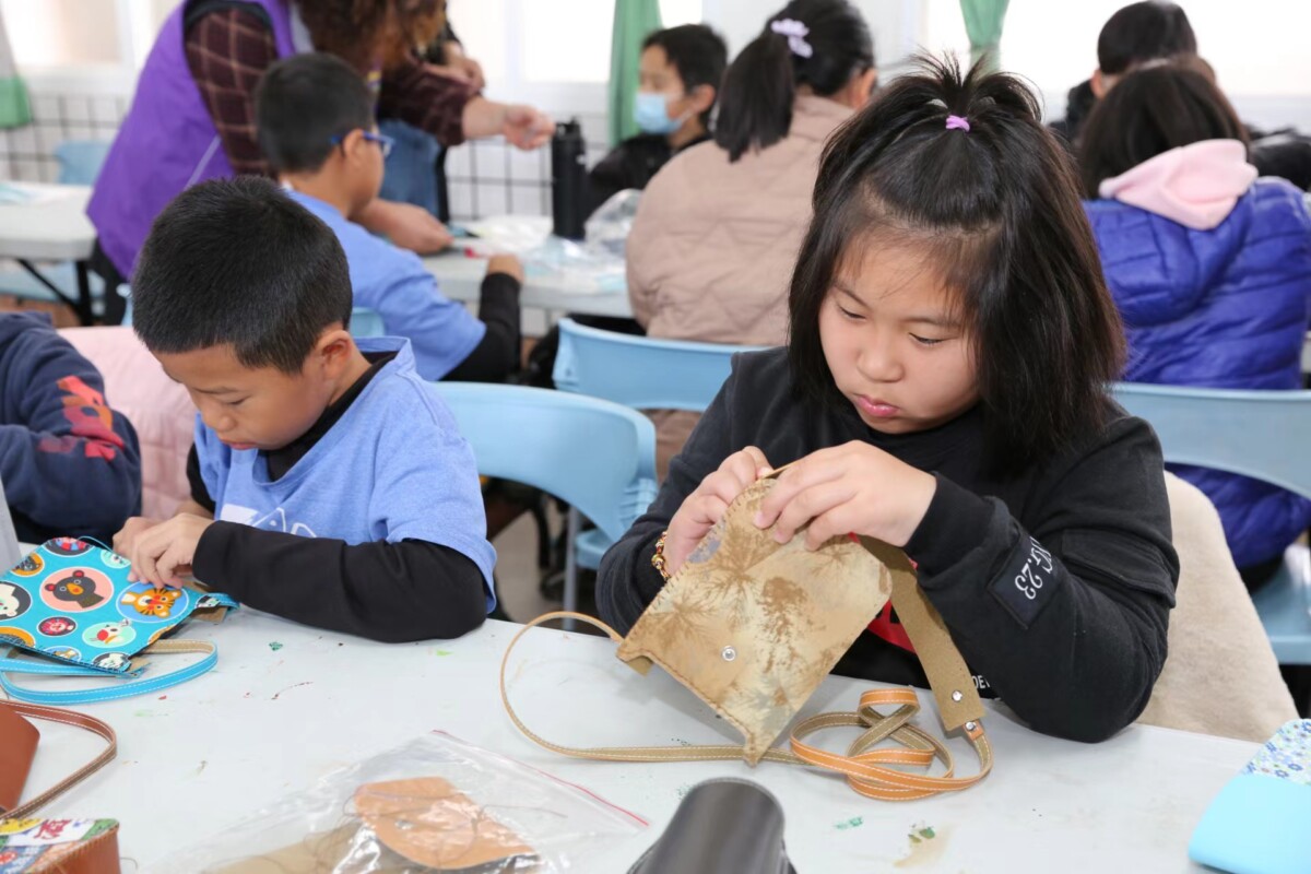 本場次活動由台灣冷凍空調展望關懷協會為主辦單位,由救國團嘉義團委會為承辦單位,結合救國團東石鄉團委會社區據點資源,特別邀請手作講師沈康雅紡老師,帶領網寮國小1至6年級共31名學生,運用拼布、皮革等素材,製作兼具實用與美感的文創手作「拼布皮革斜背手機袋」。孩子們從設計、裁剪到縫製,全程親手完成,專注的神情與成品完成時的笑容,成為活動現場最動人的畫面。