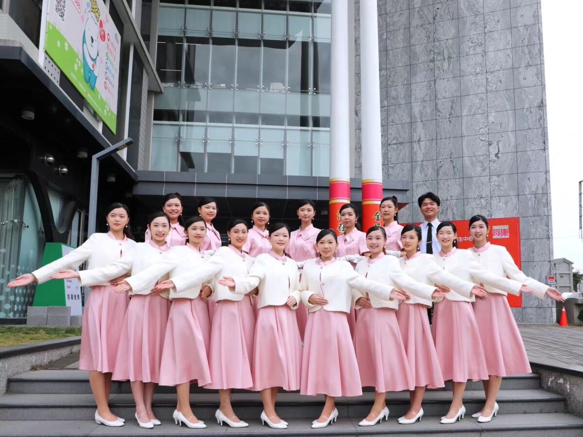 ▲美容保健科禮賓培訓成果展現,學生以標準手勢與自信笑容合影,象徵以熱情與專業迎接國家級大型活動貴賓。