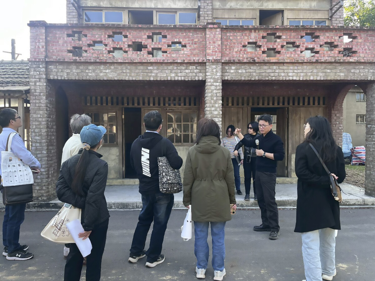 本次說明會先由文化局介紹岸內影視基地政策緣由、目前建設成果、場景工程營造類型,由本案基地場景建設技術小組李明澤建築師事務所,介紹場景搭建的模組式景片組構系統、工程技術、工法材料不同時期演化特色、新建多功能庫房等,最後實地勘察時代場景工程,清代漢人市街、車站廣場區、
