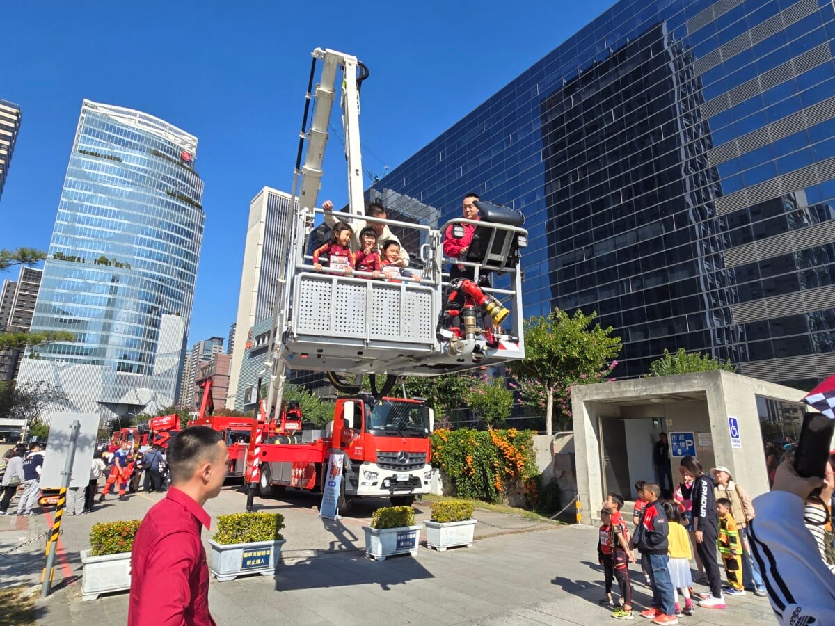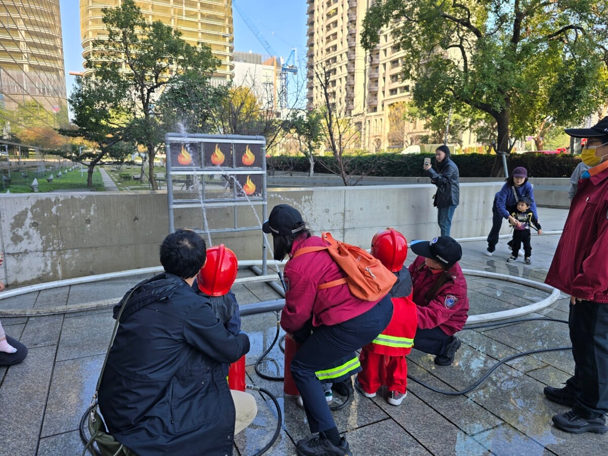 活動現場設有豐富多元的消防體驗與舞台節目,包括水滅火器射水體驗、消防衣著裝、VR防災體驗及搜救犬互動等闖關遊戲;舞台區則邀請東森幼幼台哥哥姊姊帶來活力帶動跳,並安排消防形象大使演出,搭配美食市集,現場氣氛熱鬧溫馨,適合全家大小一同參與。