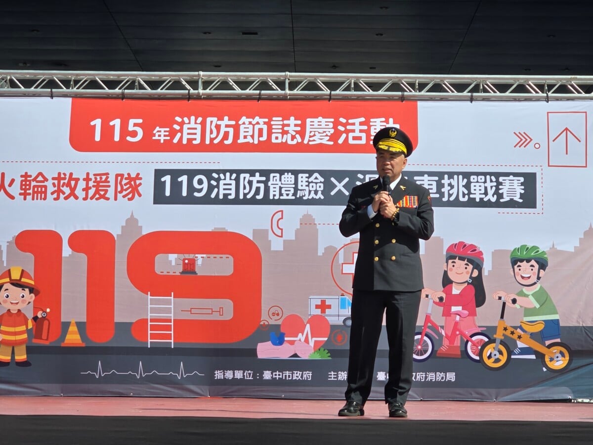 【記者 廖美雅/台中 報導】為迎接119消防節並拉近消防員與市民的距離,中市消防局於今(24)日上午在台中市政府府後廣場舉辦「風火輪救援隊-119消防體驗×滑步車挑戰賽」消防節誌慶活動,透過親子同樂的方式,讓孩童化身「小小風火輪救援隊」,在趣味競賽與消防體驗中,從小認識消防工作的日常與守護城市安全的重要性。