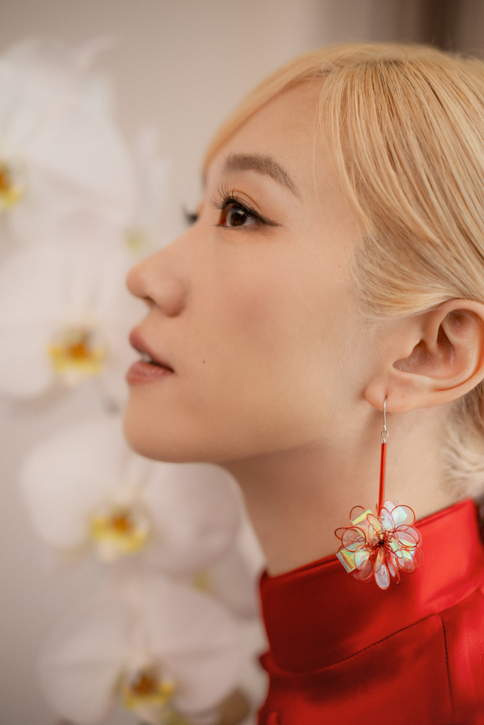 ▲ Lulu 著一襲 夏姿紅中式立領削肩背心,禮服以「鳳」為題。(圖:天地合娛樂 X 民間友人有限公司提供)