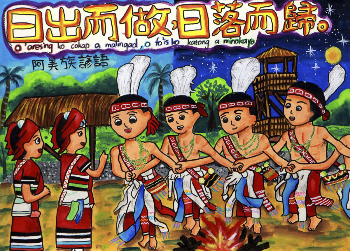 教育局表示,本次展出的45件作品,均展現出極高的藝術水準與文化觀察力。佳興國中許涵晴以《日出而做,日落而歸》展現阿美族圖騰的族群特色;保東國小陳芯妍以《一个某無人知,兩个某相卸代》奪得國小中年級組第一名,畫面動感且色彩和諧,生動突顯台語俗諺意涵;佳興國小翁宥薰則以客語四縣腔俗諺《跌一擺,撿到一隻金雞嫲》為題,透過繁複構圖呈現,傳遞客家務實精神。此外,新營國小吳秉檉《入境隨俗》則以印尼語描繪熱鬧場景,充分呈現各族群語言文化的深層意象。