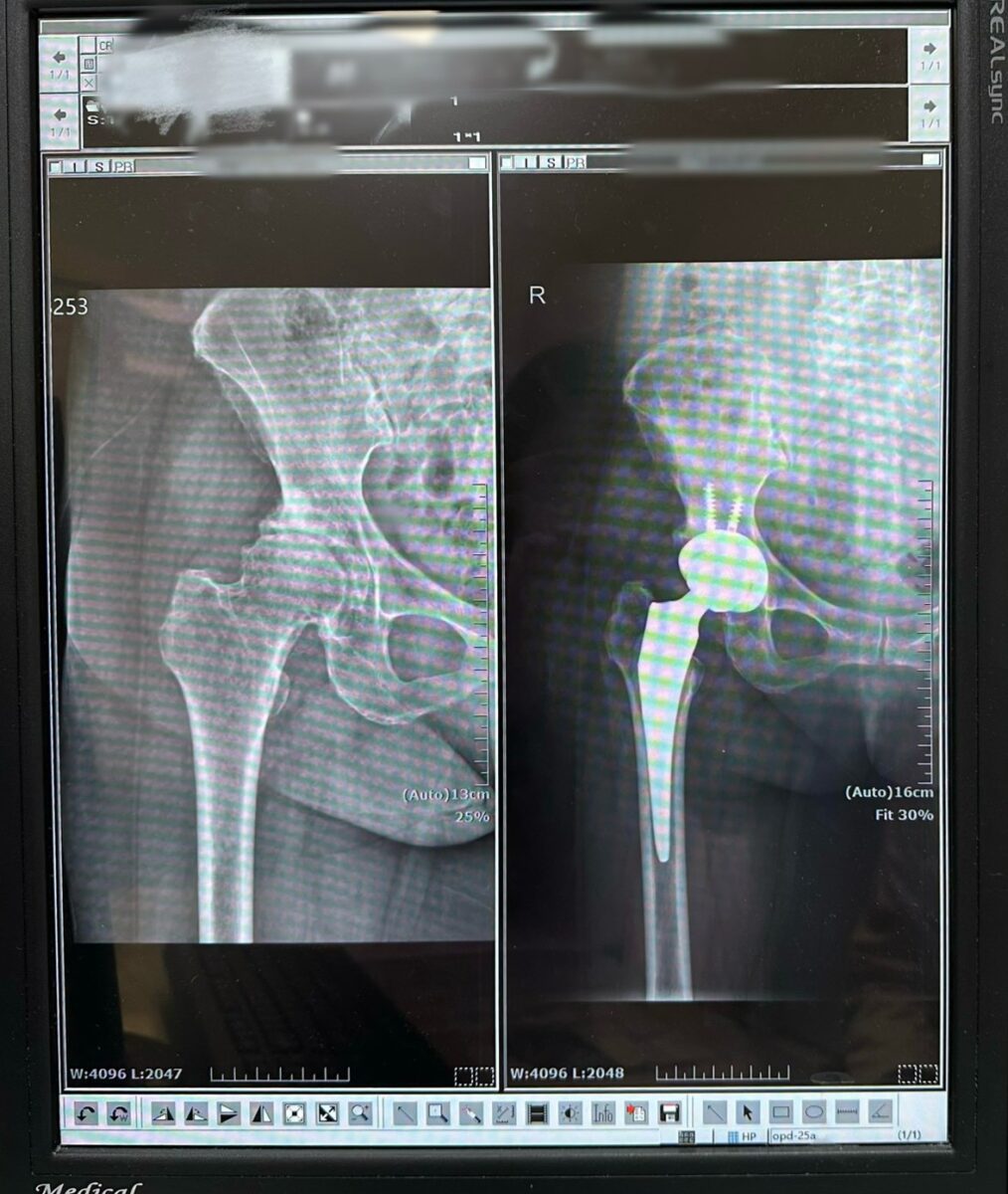 【記者 劉芳妃/嘉義市 報導】75 歲的楊女士,長期飽受髖部疼痛之苦,上下樓梯更是舉步維艱,日常生活也須仰賴止痛藥維持,經中榮嘉義分院骨科醫師賴彥博評估後,採用「正前開人工髖關節置換手術(Direct Anterior Approach, DAA)」,術後當天即能在助行器輔助下下床行走,復原進程明顯加快,住院3至4天,出院後重回自主行動人生。
