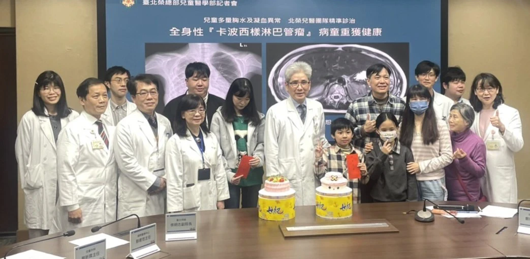 詹姓男童4歲時因跌倒住院,檢查意外發現雙側肋膜積液,醫師判定為疑似血管瘤,但治療成效不彰,呼吸困難症狀仍逐漸加重。之後轉至台北榮民總醫院就醫,才確診為罕見「卡波西樣淋巴管瘤」,目前該病全球文獻紀錄不到100例。經治療後,現年10歲的他恢復健康與活力,不論上學或參與體育活動,皆能正常生活不受影響。
