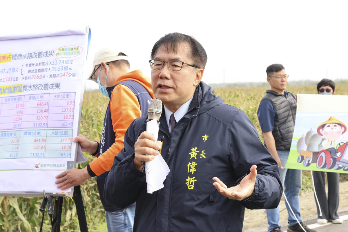 黃偉哲強調,為提升農機具作業便利性及農產品運輸效率,市府七年來大筆投入農地重劃區農水路改善,經費約達35.53億元,其中包含中央補助緊急農水路改善經費10.54億元、早期農水路改善經費9.99億元及本市自籌市預算15億元。另外投入於非農地重劃區農漁水路改善經費亦達31.74億元,合計經費共達67.27億元,完成改善農路約達1,743公里、水路約達226公里及漁路約達147公里,改善總長度約4.7條中山高速公路,成果全國之冠。