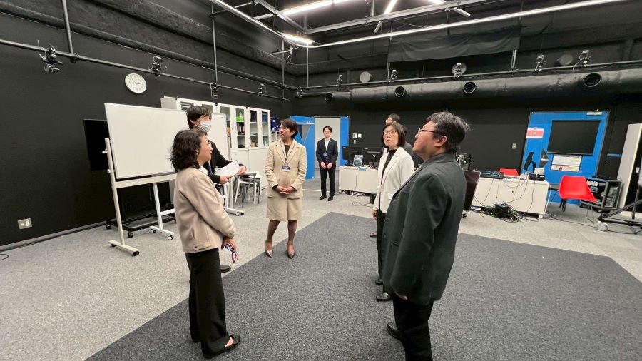 隨後參訪團轉往東京國際工科專門職大學,了解該校在 AI、機器人及動畫領域的實務教學實力。工學院長武本充治指出,學校核心目標在於培育具備設計新商業模式能力的數位人才,因此課程極度重視任務導向(PBL)教學,並落實高達 600 小時以上的企業實習制度,確保學生具備厚實的即戰力。交流過程中,日方對高科大的半導體學程模式展現濃厚興趣,雙方均期待未來能進一步推動學生交換與跨國教育合作。