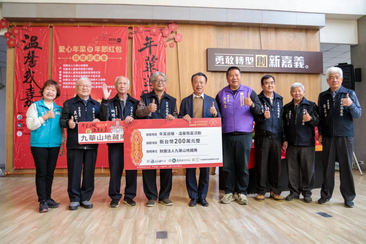 今年由九華山地藏庵、新港奉天宮、朴子配天宮、民雄鄉大士爺廟、嘉邑行善團社會福利慈善事業基金會、阿里山茶葉生產合作社及福添福社會福利慈善事業基金會等單位共同捐助1,500份年菜及年節紅包和活動經費,總價值達405萬元。