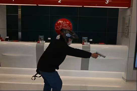 本次演練過程,假扮歹徒之員警持槍闖入中國信託銀行嘉興分行,高喊「搶劫、把錢拿出來」,行搶得手後騎乘機車逃逸,演練過程逼真,現場來辦事的民眾一度信以為真,瞭解真相後,不僅鬆了一口氣,還對警方的認真與專業表示高度讚賞,增添演練真實感。警方隨即依行員提供之歹徒特徵及逃逸方向,隨即以無線電通報並由勤務指揮中心指派實施攔截圍捕,最終於博愛路二段一帶成功查獲搶嫌,完整驗證重大刑案即時反應機制。分局人員並在現場進行反詐騙預防宣導,提升民眾反詐意識。