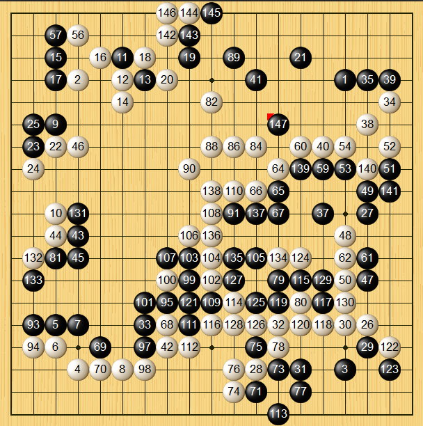 後半盤雙方在劫爭與收官中的取捨尤為精彩,一邊是堅守實利,一邊是尋找逆轉火花,步步都牽動全局。整體來看,這局棋兼具職業水準的複雜度與觀賞性,是一盤值得反覆推演的佳局。(黑勝)