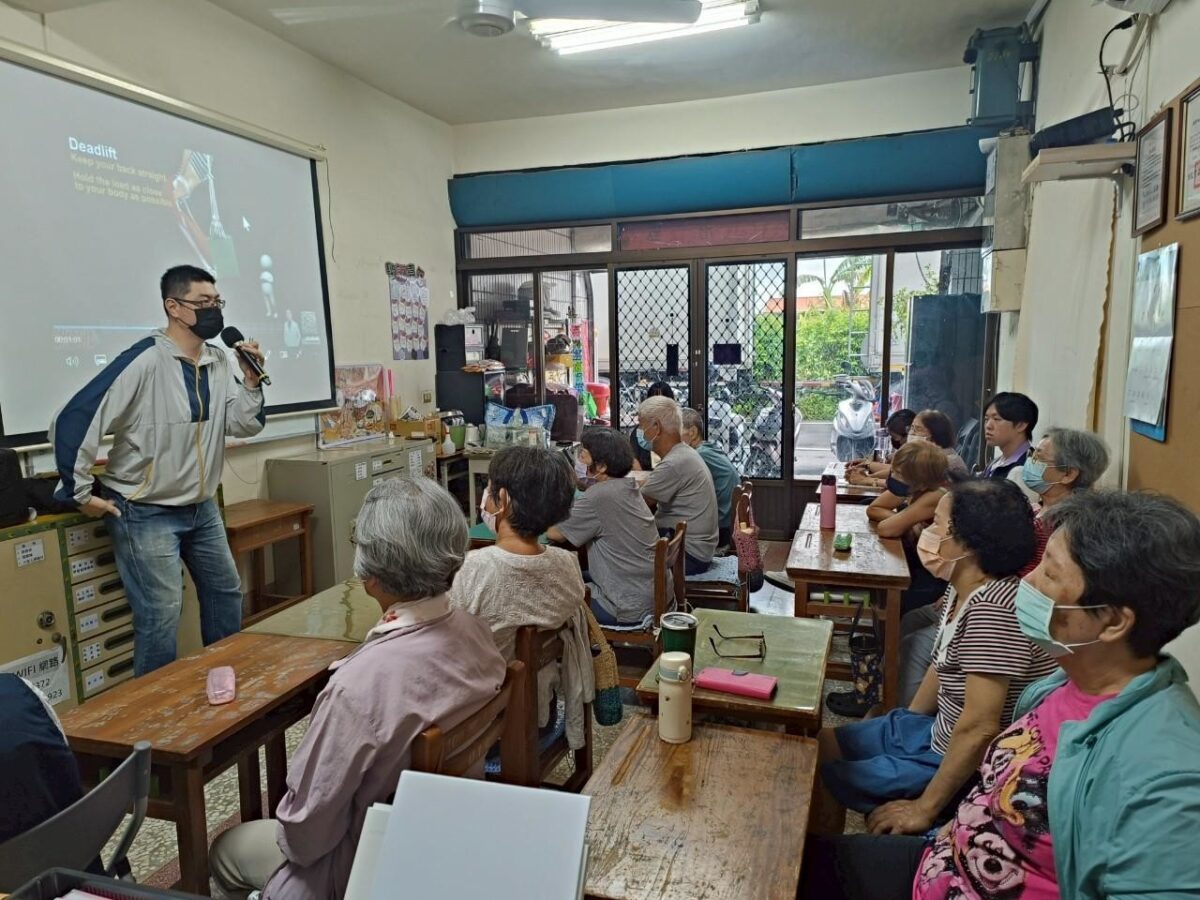 ▲臺中榮總灣橋分院復健科物理治療師陳佑昀,以「肌少症」為主題,從日常生活切入,帶領長輩辨識肌肉流失的徵兆,並示範在家即可操作的簡易檢測與訓練方法。除了運動,飲食同樣是維持肌肉量的關鍵。