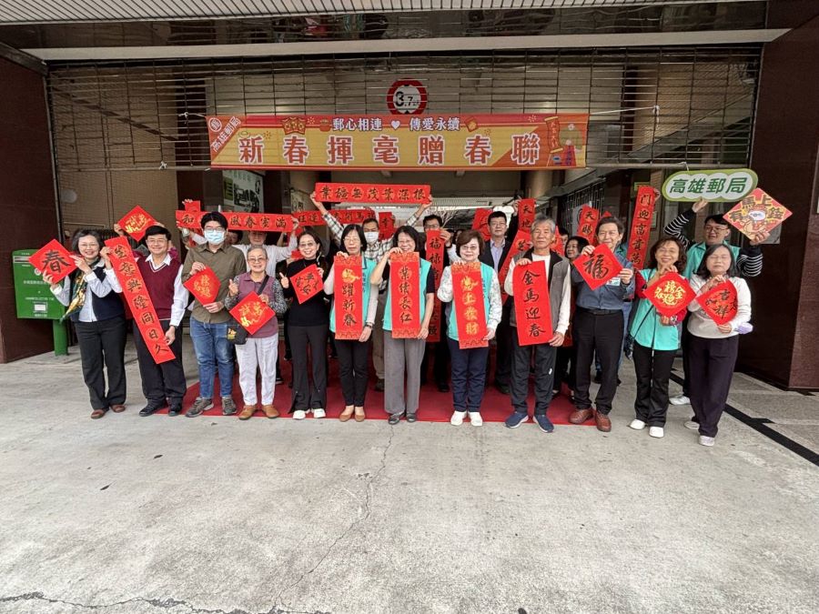 【記者 王雯玲/高雄 報導】為迎接農曆新年、傳遞節慶祝福,高雄郵局金(30)日上午在中正路守衛室入口前川堂,舉辦「郵心相連・傳愛永續-新春揮毫贈春聯」社區活動,現場墨香四溢、人潮絡繹不絕,洋溢濃濃年味與溫馨氣氛。