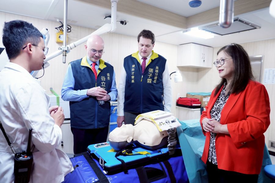 雲林艦長並帶領管主委及谷處長等人了解艦上救援醫療等相關設備,強調海巡艦艇在區域和平與救援的重要價值。海洋委員會表示,透過充滿在地溫度的「馬年」春節文化體驗,不僅讓國際夥伴更貼近台灣,也展現出台美夥伴關係在專業合作之外,更具人情味與生活感的一面。