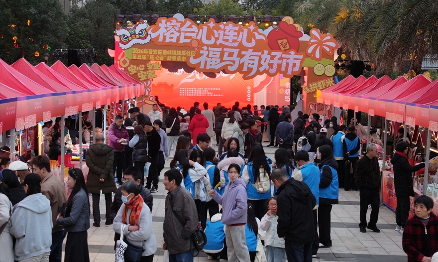 2026年晉安區岳峰鎮桂溪社區第五屆「連心薈」新春集市,在福州桂溪社區兩岸社區交流中心廣場舉辦。集市彙集台灣優質品牌和福建老字號商品,特設有士林夜市區、台灣年貨展區、福建年貨展區、非遺展區四大主題展區,上百款兩岸好物齊聚,活動將持續至2月1日。