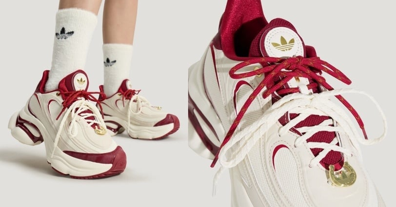 這雙 Gazelle 打破了「節慶鞋等於俗氣」的印象,採用雅致的紅色調配上 中國結徽標。