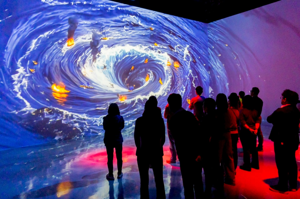 踏入劇場瞬間,來自前、後、左、右與地面等5面720度的投影瞬間包圍,搭配聲光效果與多層次感官刺激,讓故事從平面畫面升級為「親身參與」的沉浸式體驗,展現 Unreal Engine 5 與 AIGC 技術融合下的全新娛樂型態。