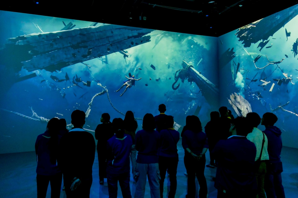 不同於以往以觀看為主的遊樂形式,遊客在設施中將親身感受「地心引力驟變」與「深海壓迫感」,透過裸眼 3D 與即時動態捕捉技術,讓體驗不再只是戴著眼鏡看影像,而是以第一人稱視角,彷彿「親身墜入」亞特蘭蒂斯深海,展開一場跨越時空的冒險旅程,堪稱國內少見的高規格體感型設施。