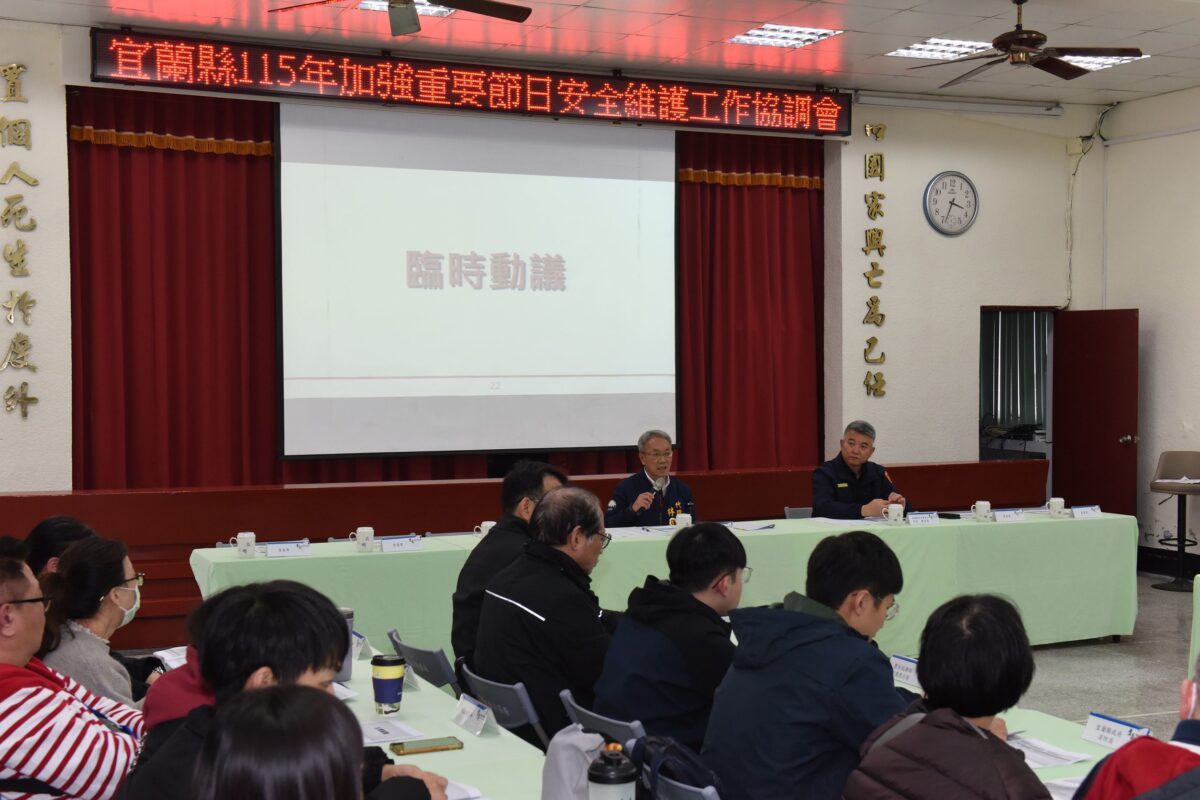 【記者 林明益/宜蘭 報導】115年「加強重要節日安全維護工作」將自2月9日22時起至2月23日24時止,為期15天,宜蘭縣政府2月2日召開工作協調會,林茂盛代理縣長親臨主持,期望警民齊心總動員,讓縣民安心過好年。
