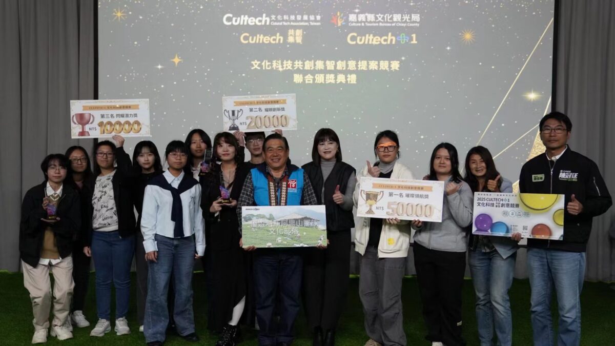 圖:嘉義縣政府、嘉義縣文化觀光局、文化科技發展協會共同舉辦「CULTECH+1文化科技競賽」今(3)日舉行頒獎典禮,表揚在4大文化場域中脫穎而出的優秀提案團隊。(記者吳瑞興翻攝)