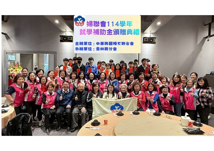 【記者 劉春生/雲林 報導】中華民國婦女聯合會雲林縣分會3日假虎尾皇品川菜餐廳頒發114學年高中職學生就學補助金受贈人員,計有25位設籍雲林的高中職學生受惠。典禮由婦聯會雲林縣分會張嘉郡主任委員主持、雲林縣副縣長謝淑亞蒞會參加。