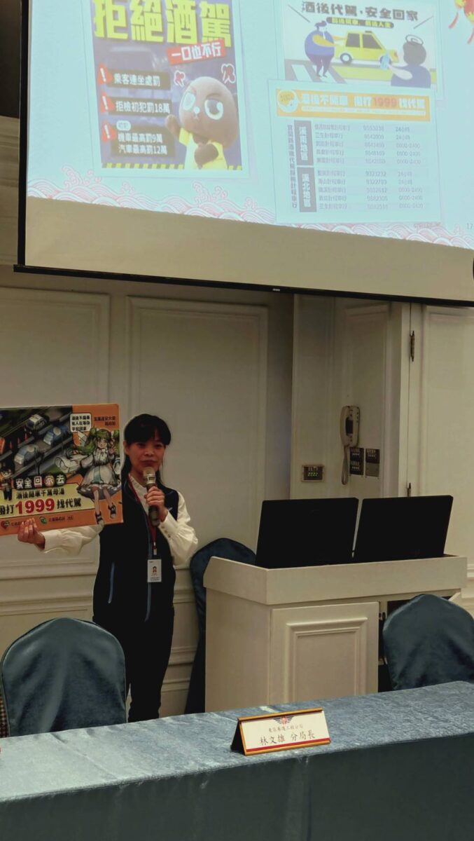 ▲宜蘭監理站黃藝娜副站長簡報說明喝春酒安全回家可撥打1999找代駕。