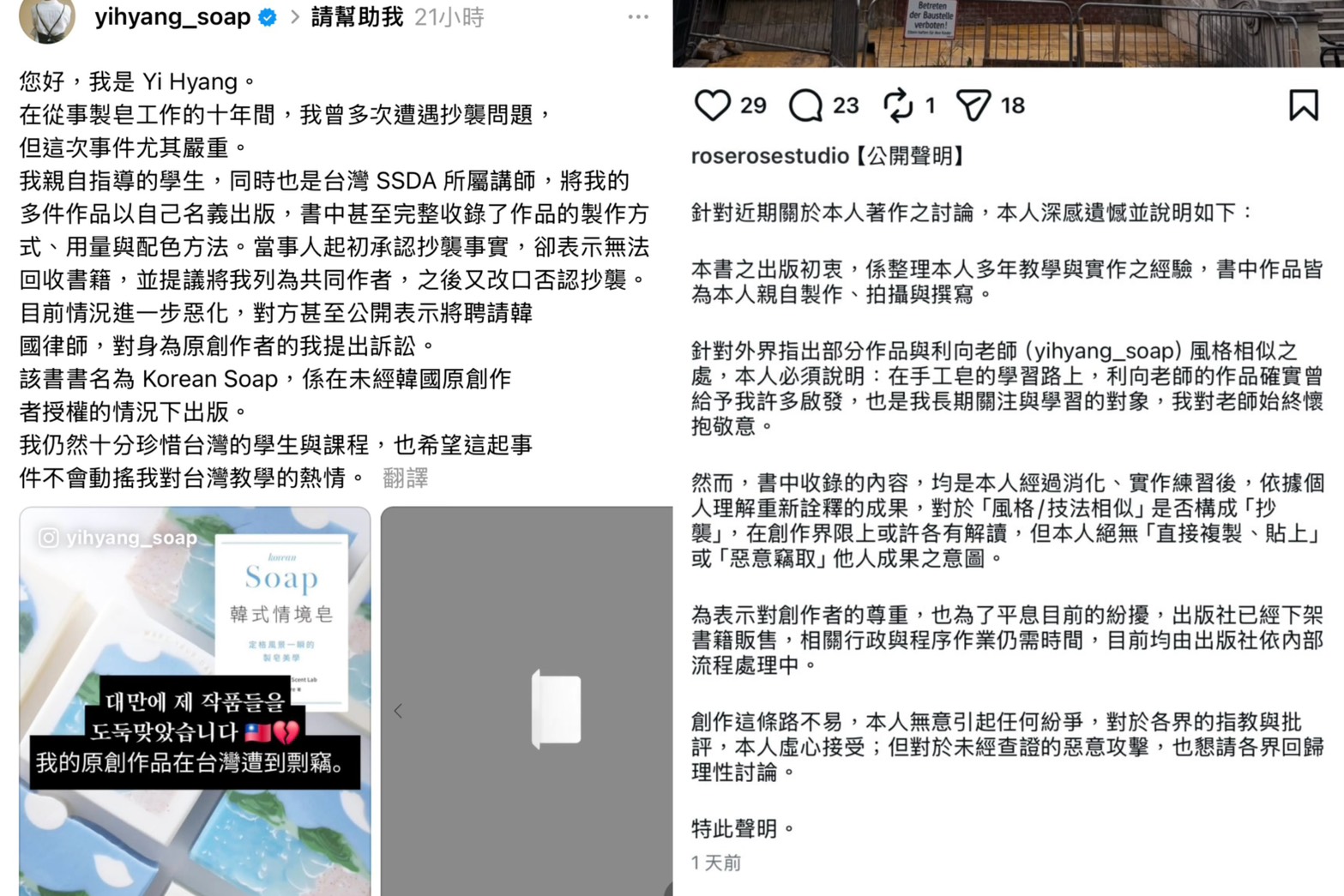 韓國肥皂創作家「利向」指控,台灣出版書籍《韓式情境皂:定格風景一瞬的製皂美學》涉嫌大量抄襲其原創教材內容一事。台北市議員許淑華今(5)日表示,有接到民眾投訴,希望是否能幫忙原創韓國作家,該案已不僅是單一創作糾紛,而是可能同時涉及著作權侵害、商業不當利用及消費者權益受損等多重法律問題,相關主管機關應審慎面對。