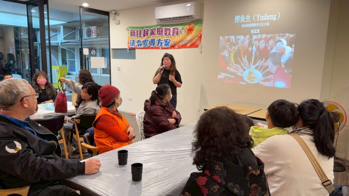 黃真真以輕鬆生動的方式,從新加坡的地理位置與氣候特色開始,帶領大家認識赤道附近的熱帶環境,進而分享多元族群與宗教共存的生活樣貌,以及新加坡農曆新年習俗與起源。其中,黃真真特別介紹新加坡農曆新年極具代表性的傳統文化「撈魚生(Yusheng)」,說明歷史背景與文化意涵,以及各項食材背後所象徵的祝福與寓意。活動尾聲更安排新住民學員實際體驗「撈起(Lo Hei)」儀式。隨著食材逐一加入大盤,大家口中高聲送出祝福,並齊力將食材高高撈起,在歡笑中感受團聚祝福的年節氛圍,體會到如家般的團圓滋味。