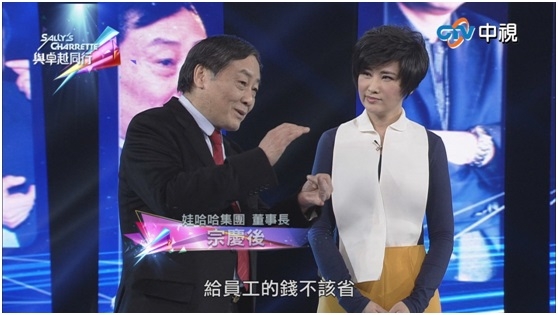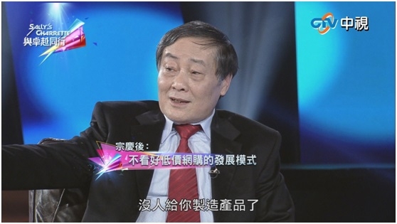 『馬雲曾說,通路商賺取利潤太高,應該把這些錢,還給消費者、還給製造業呢!』中視《與卓越同行》節目主持人吳小莉提問,宗慶後直率回擊:『馬雲叫來,我跟他糊弄糊弄。』引來全場觀眾大笑。