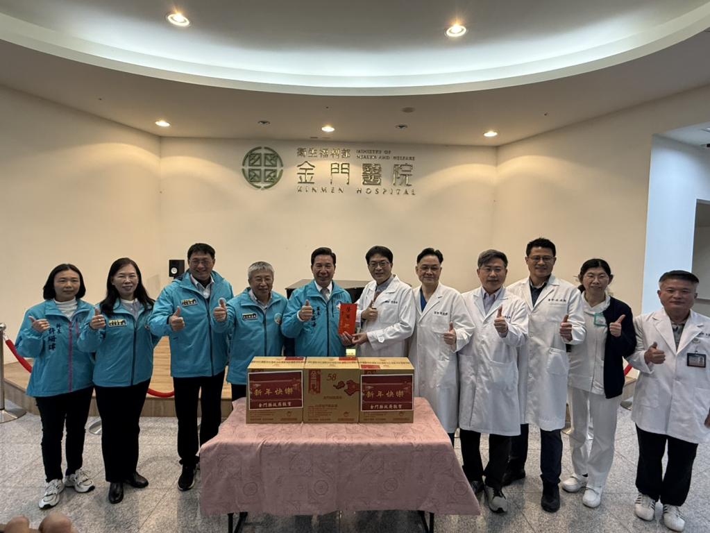 金門縣府表示,縣長陳福海率民政處處長陳國興、衛生局局長李金治等,先後至各單位慰問,並由陳縣長頒發慰問金及禮品,對於金門醫院醫療服務辛勞,國軍長期支援地區例行後送病人接送、海巡積極查緝走私維護地區治安,及空勤總隊協助載運緊急傷病患付出表達由衷感謝,陳縣長特地向全體工作人員致意,祝福春節快樂。(金門縣政府提供照片)