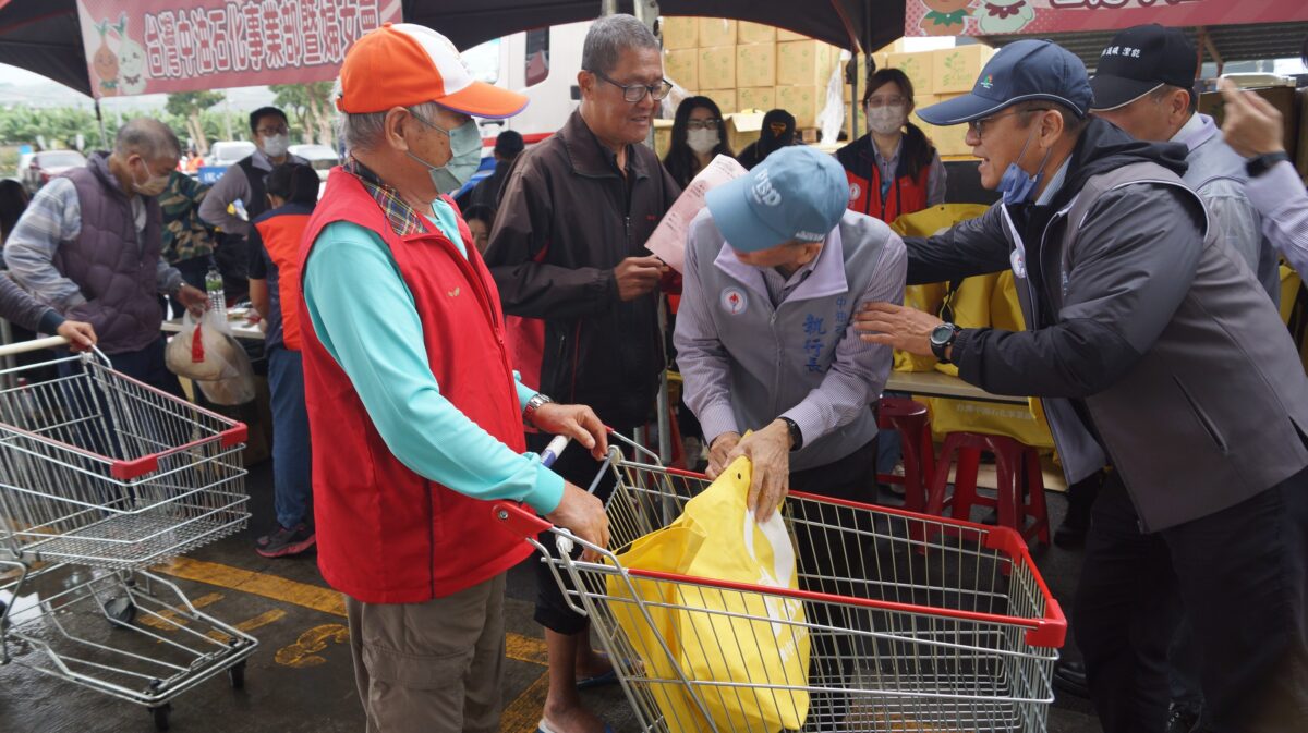 ▲黃三泰執行長親自發送物資給鄉親