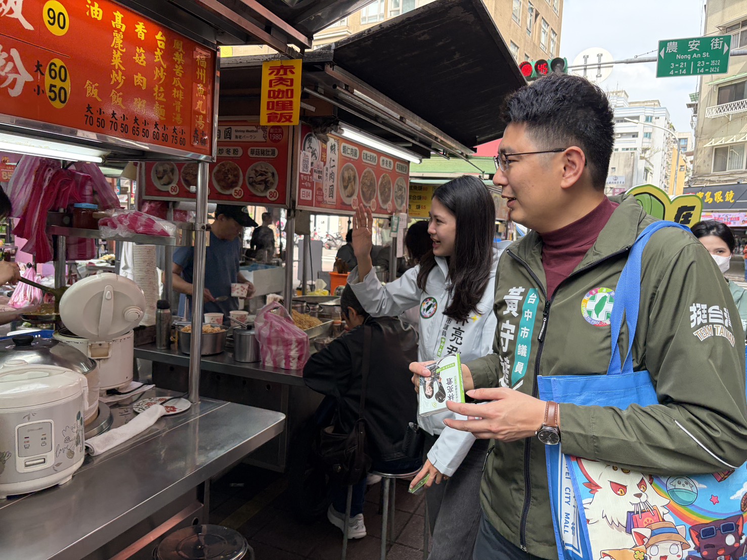 台北市議員林亮君今(6)日邀請昔日學運戰友、台中市議員黃守達一同前往台北市晴光市場掃街拜票、發放春聯。林亮君昨日已正式完成民進黨內初選登記,面對農曆年後即將登場的黨內初選,她坦言許多鄉親仍不知情,正積極走入街頭宣傳;擁有逾10年革命情誼的黃守達特地北上力挺,盛讚林亮君多年來皆站在第一線服務,是優質且努力的年輕人才,呼籲中山、大同區的支持者在初選民調時,「唯一支持林亮君」。
